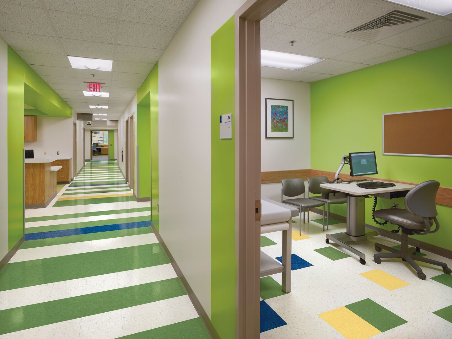 For example, a project may use VCT in high-traffic corridors, LVT in patient rooms or offices, and sheet vinyl in areas where moisture resistance is a priority. With coordinated visuals and compatible installation systems, transitions between materials can be planned intentionally to support both performance requirements and design continuity.